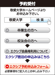 校友会事務局では皆様からのお問い合せや、予約の対応に当っています。また、校友会のホームページで、利用できるホテルについての情報や、予約状況の確認ができるようになりました。校友会員であればどなたでもご利用いただけます。家族で、お友だち同士で、カップルでぜひご利用ください。