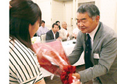 総会終了後、退任される橋本会長の長期に渡る校友会へのご尽力に役員より花束を贈呈させていただきました。ご苦労さまでした。
