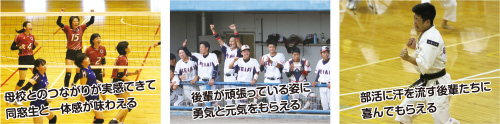 この機会に、お友達と誘い合わせ、試合の応援に行ってみてはいかがでしょうか。選手の励みになるのはもちろん、母校の後輩が激闘する姿に元気をもらい、現役選手や同窓生との一体感も味わえるはず。各クラブの試合日程は大学のホームページからチェックできます。みんなで試合会場へ足を伸ばし、熱い声援を送りましょう!
