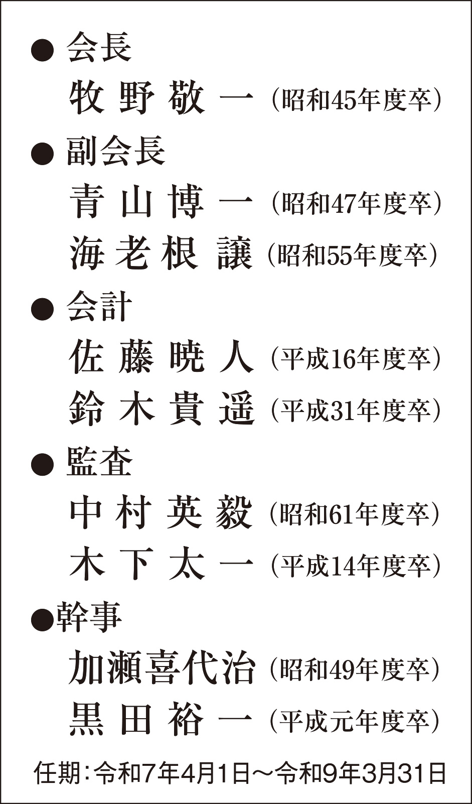 | 第三号議案 | 「令和7年度役員改選」は立候補者は無く事務局推薦のもと会長はじめ9名の役員が選出され満場一致で承認されました。2年間よろしくお願いします。 |